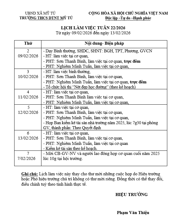 Lịch công tác tuần 22